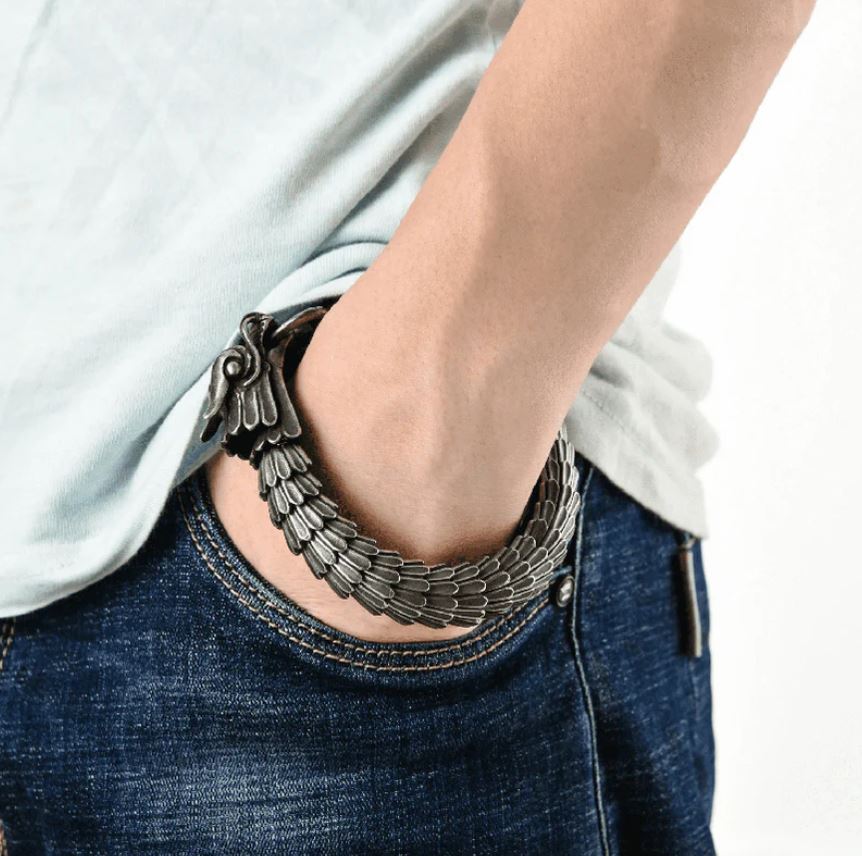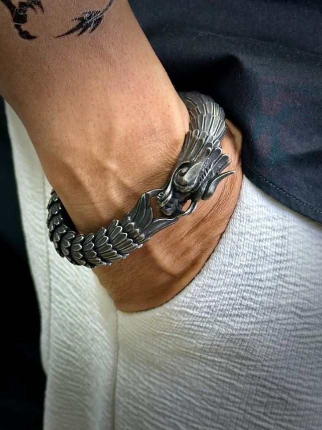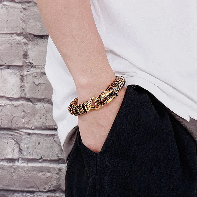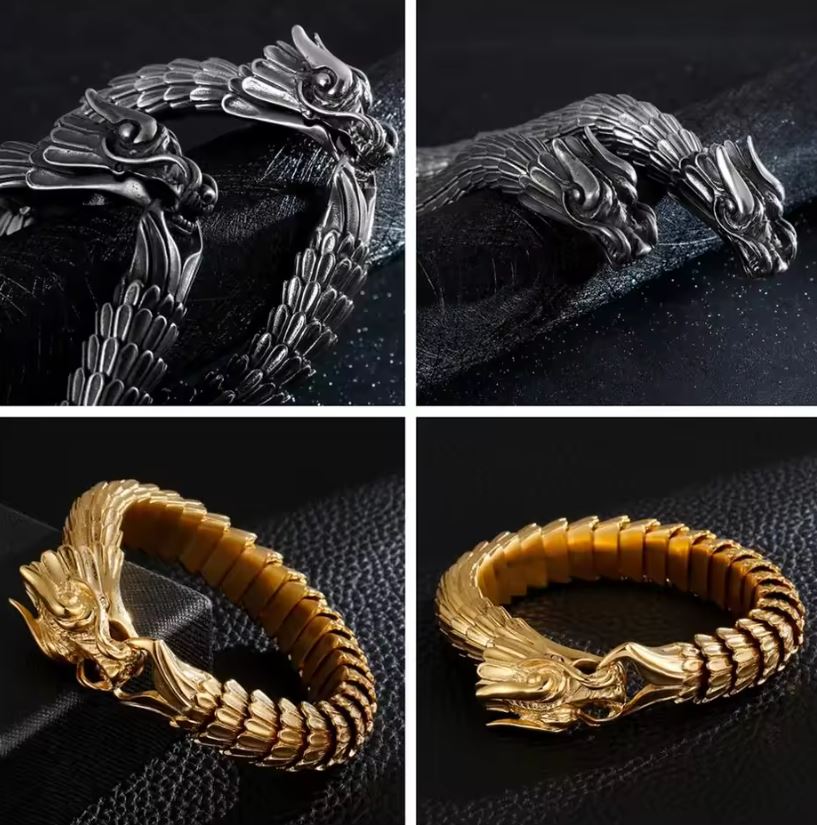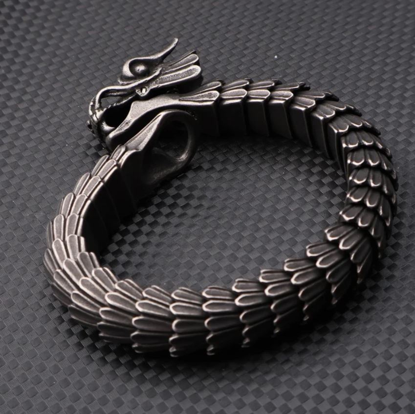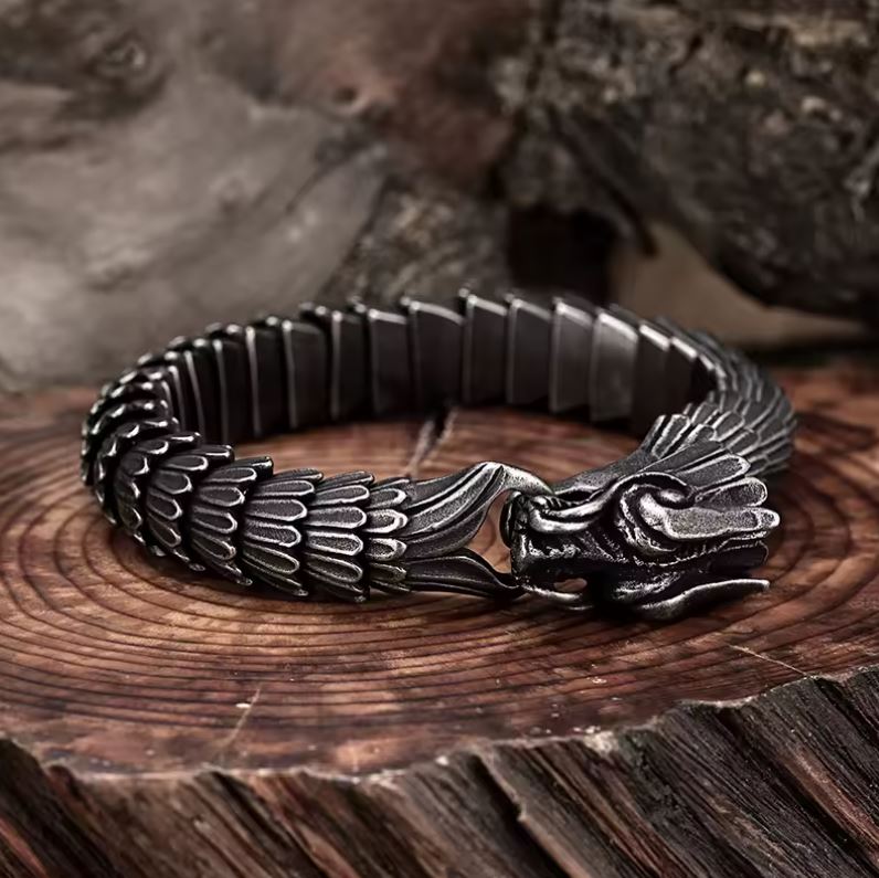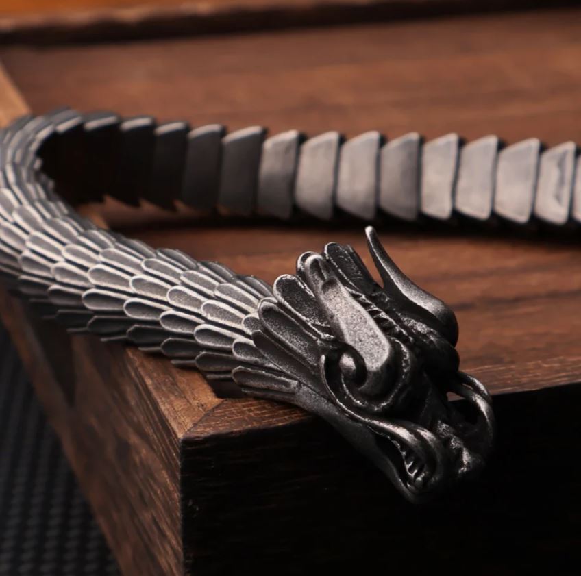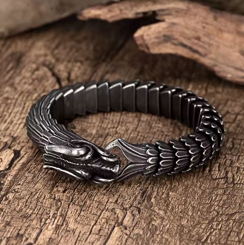 Inspired by ancient legend and crafted with precision, the Blade Viking Dragon Bracelet blends bold Viking scale design with a sleek, modern finish. Its detailed dragon-head clasp makes a quiet yet powerful statement—whether worn alone or layered. A distinctive piece that speaks of strength, character, and bold timeless style.