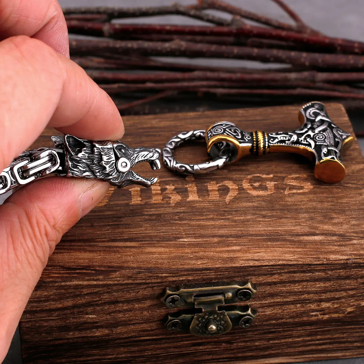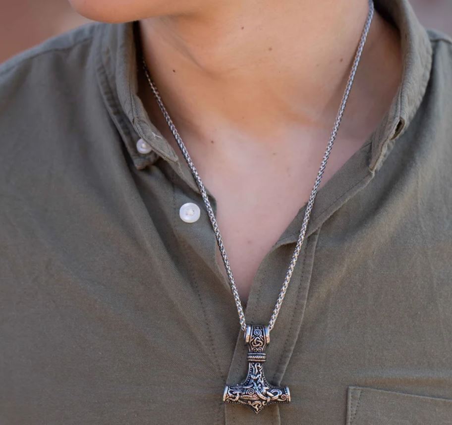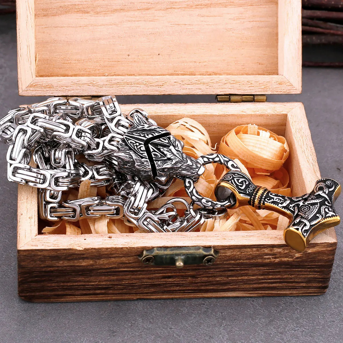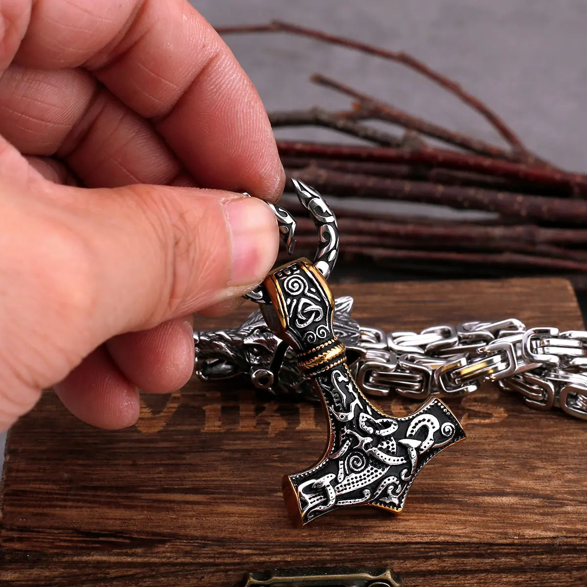 The Thor Wolfstrike Pendant Necklace combines the legendary power of Mjölnir with the fierce spirit of the wolf, symbolizing strength, protection, and primal instinct. Crafted with intricate Norse patterns and a bold dual-tone finish, it stands out as both a statement piece and a nod to ancient mythology. The detailed wolf head clasp adds a layer of mystique and craftsmanship rarely found in modern accessories. For those who walk with courage and honor, this pendant belongs at your side.